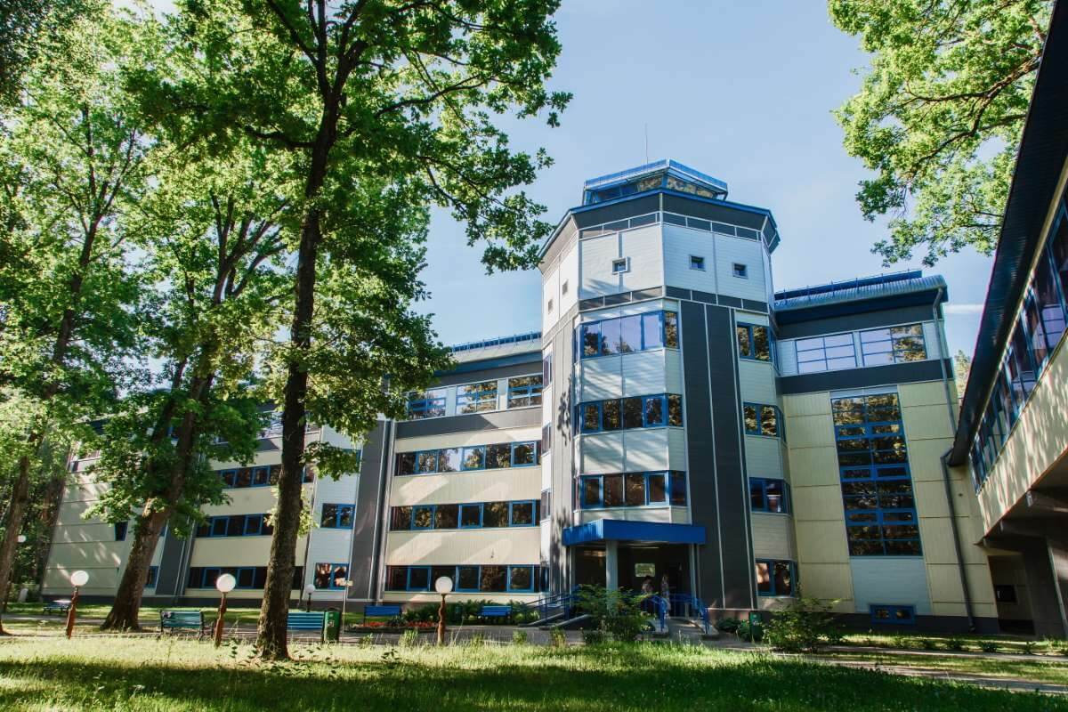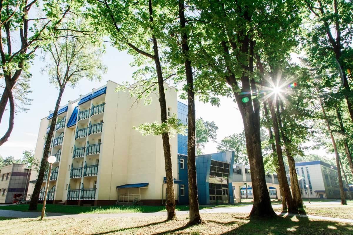 Санаторий находится всего в 50 метрах от реки Неман в гуще соснового бора, что создаёт благоприятные климатические условия.
