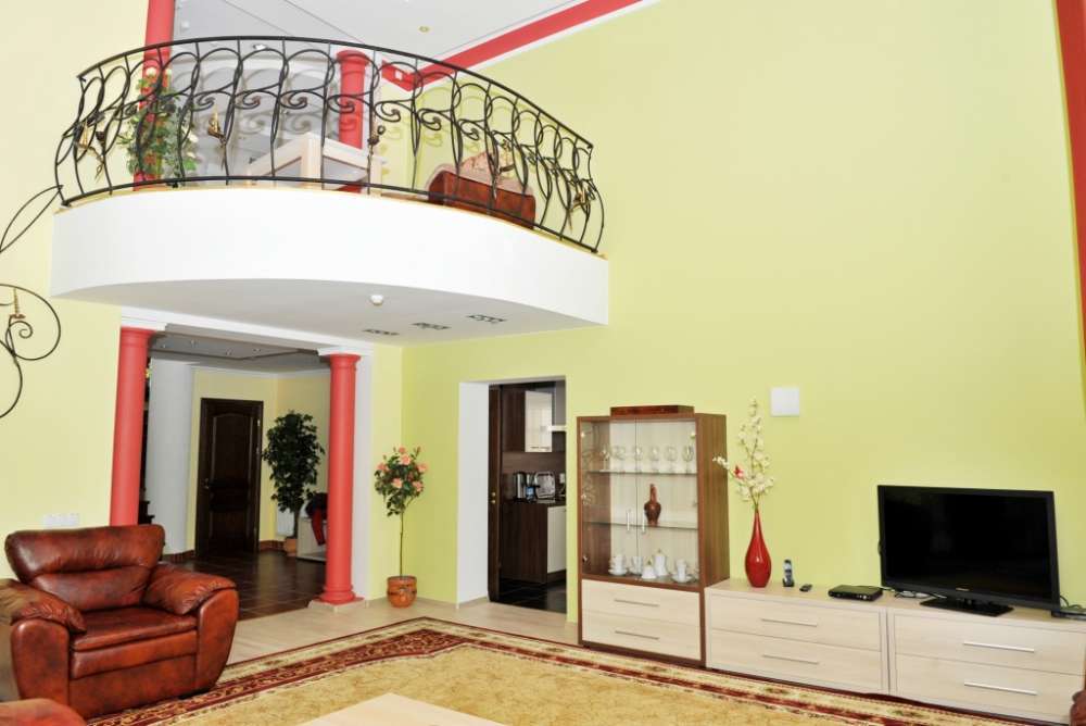 В санатории можно снять двухэтажный коттедж с оборудованной площадкой для барбекю. Коттедж вмещает до 6 человек и располагает собственной сауной с мини бассейном, бильярдом, гостиной с камином, спутниковым телевидением, кондиционером и прочими удобствами.