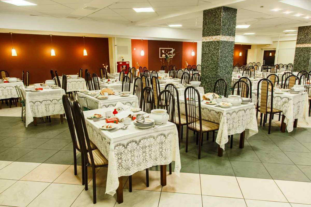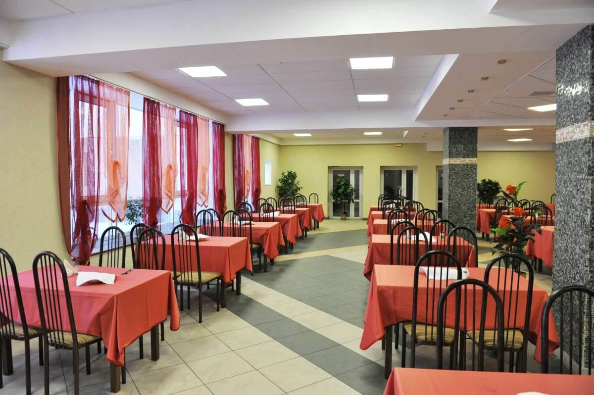 Питание организовано на 1 этаже в 2-х залах общей вместимостью 160 мест. В санатории есть возможность получить профессиональную консультацию диетолога.