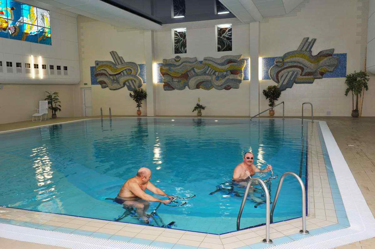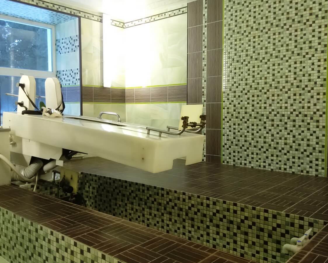 В лечебном корпусе санатория Жемчужина расположен бассейн (10x12м), который наполняется водой из артезианской скважины.